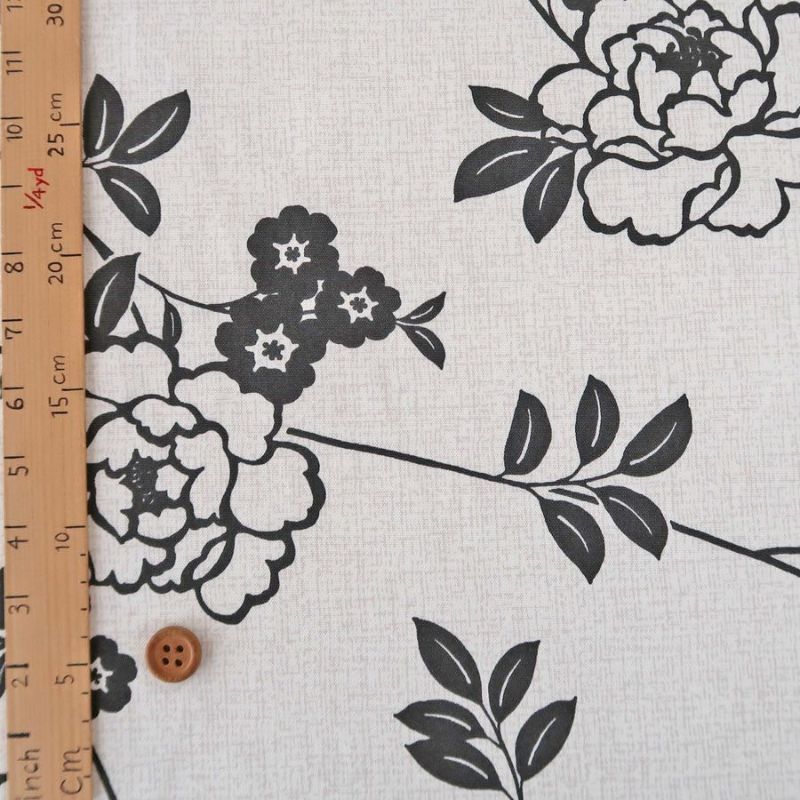 和風でも洋風でもお好みで 和柄コットン生地 モダン牡丹 150cm幅(すみ黒柄) 10cm単位 切り売り