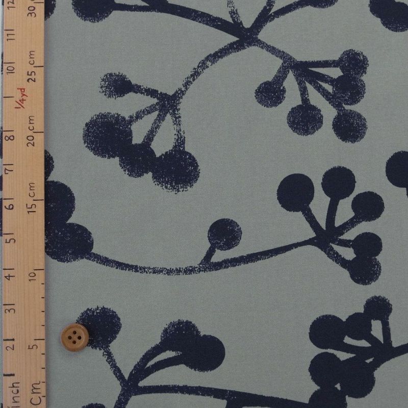エプロン・バッグ・インテリアに 在庫限り/和柄コットン生地 モダン牡丹 150cm幅(濃紺) 10cm単位 切り売り