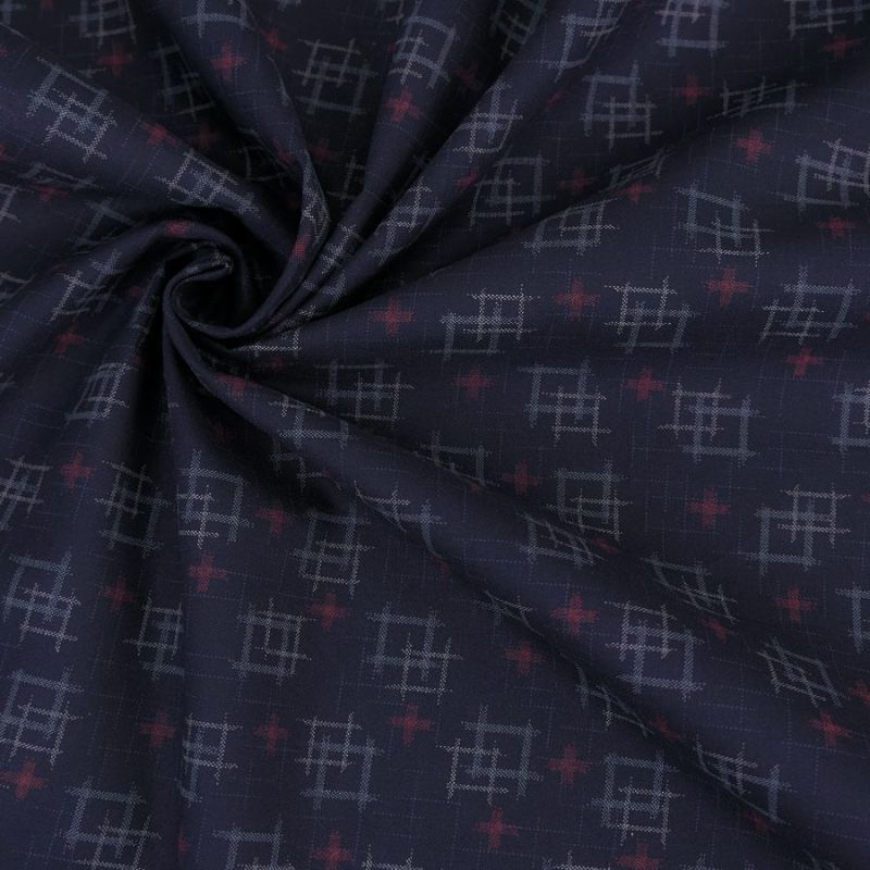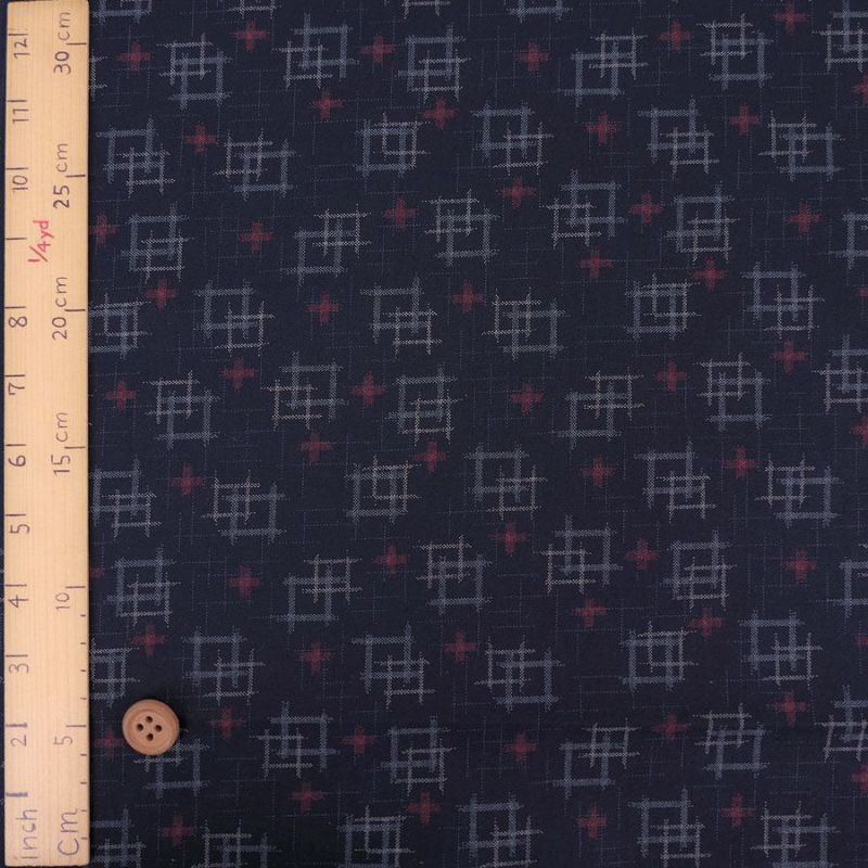 素朴なもめん生地・伝統の古典柄がシック 和柄コットン生地・藍染調 七宝つなぎ 10cm単位 切り売り