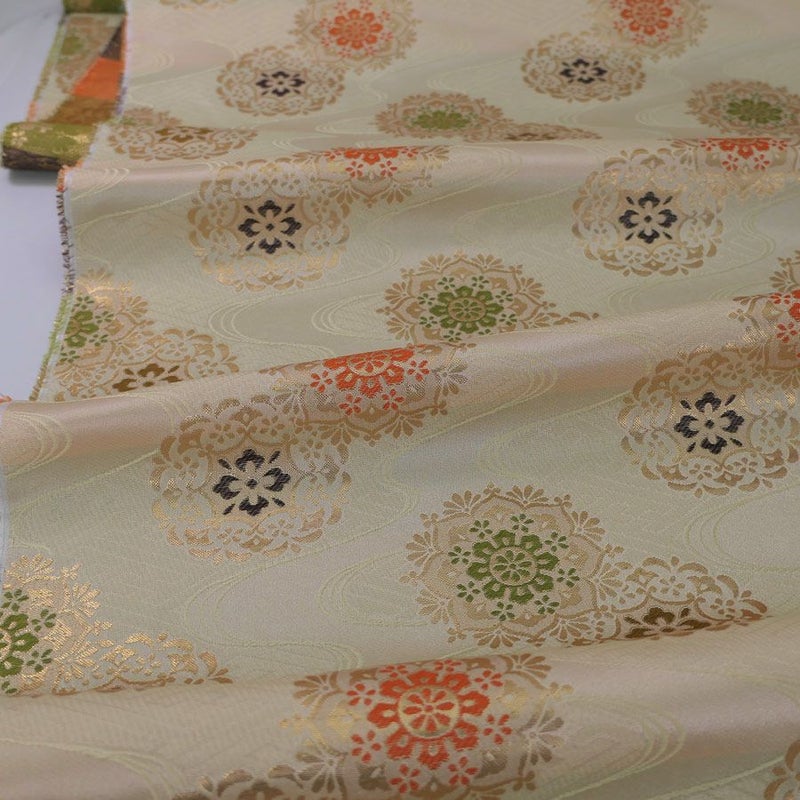上品バッグに。 金らん・流水に八弁花(グリーンアイボリー) 10cm単位 切り売り