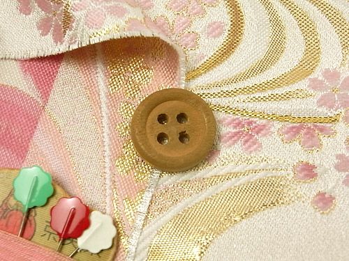 生地の上のボタンは直径約2cmです。生地のたて方向=写真のたてです。