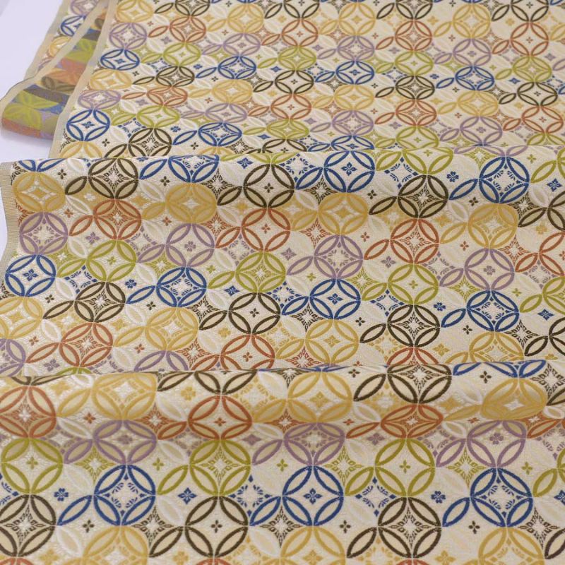 和色の組み合わせがモダンな古典柄 金襴生地(金らん)多色七宝つなぎ(金茶) 10cm単位 切り売り