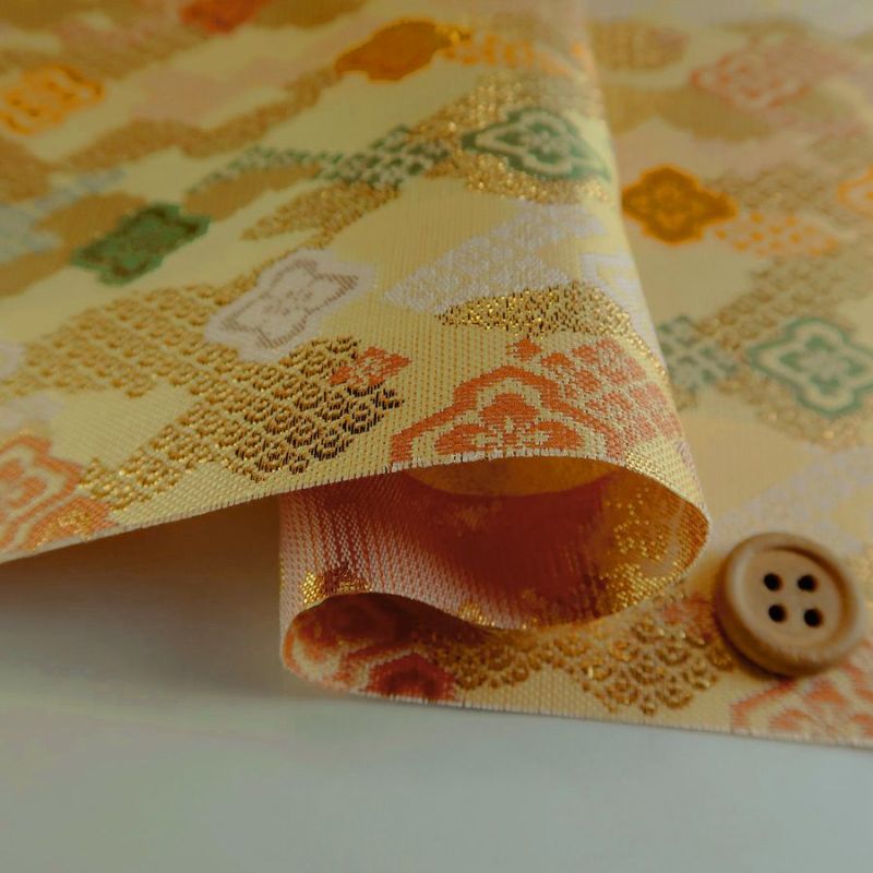 キラキラ華やかで素敵!お値段も魅力です 金襴生地(金らん)きらめき梅(黒) 10cm単位 切り売り