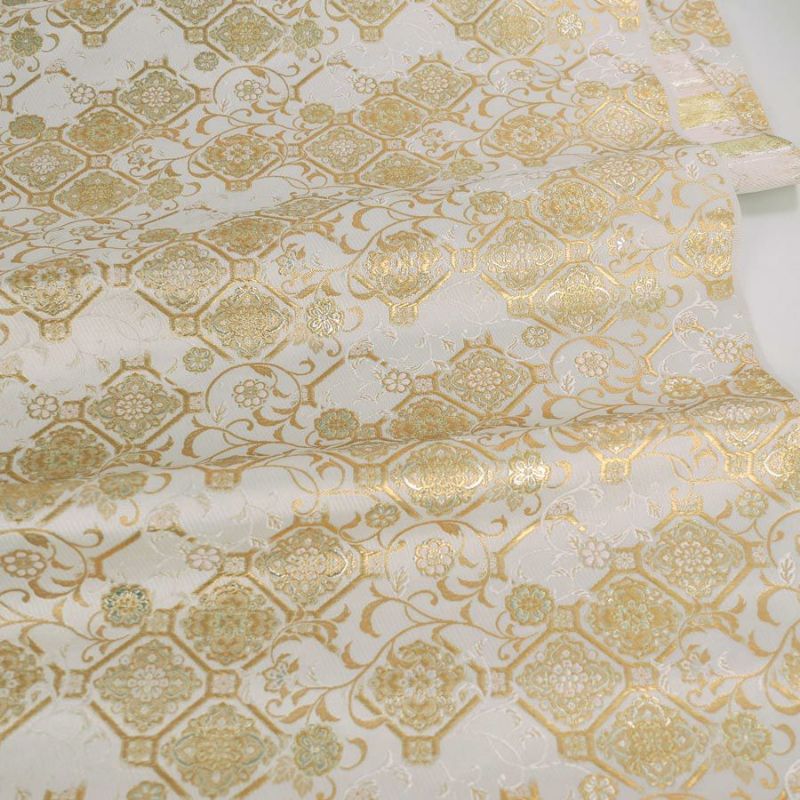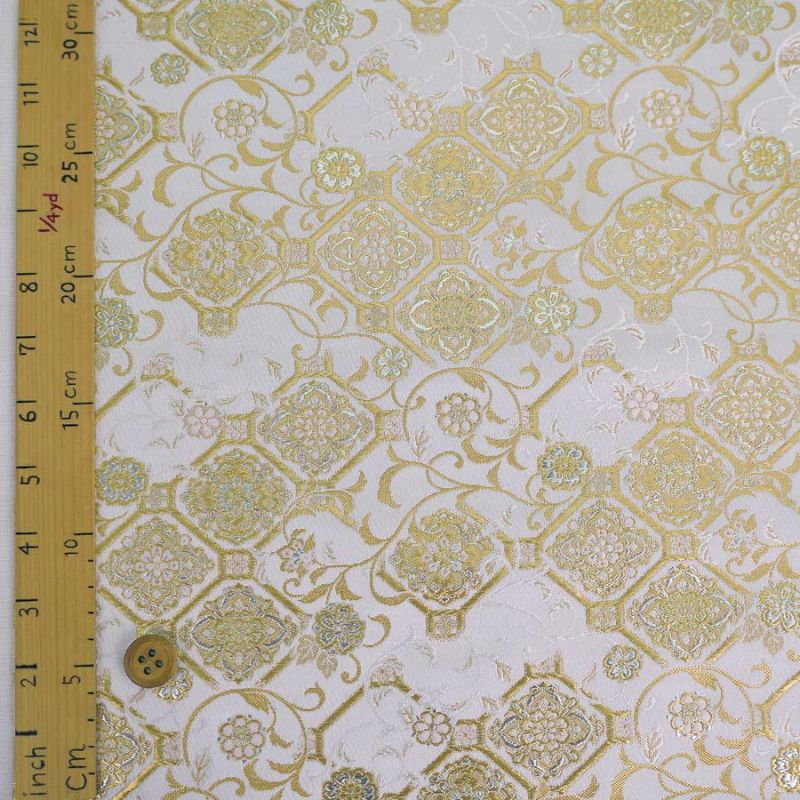 華やかな西陣織・衣装やバッグに 金襴生地(金らん)流水に雪輪とねじり花(アイボリー) 10cm単位 切り売り