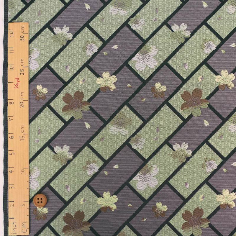 シックな色の西陣織物 金襴生地(金らん) 桧垣にのぞく桜(ねずみ色) 10cm単位 切り売り
