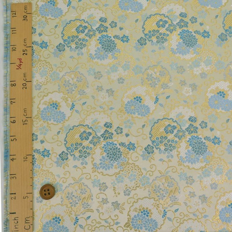 生地の上のボタンは直径約2cm。生地のたて方向=写真のたてです。
