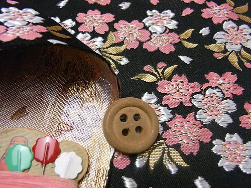 商品案内 かれんな桜柄がかわいい金襴(きんらん)生地。なにげない花柄ですが、こういう柄こそ作品になると引き立ちますよ。