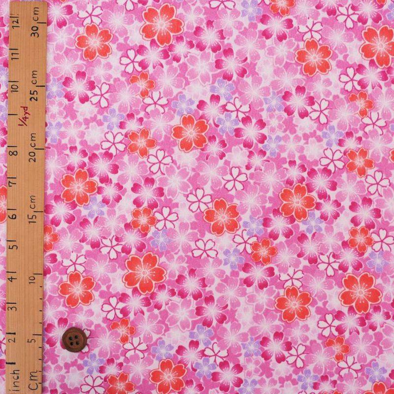 無地ポリエステルちりめん(桜色) 10cm単位 切り売り