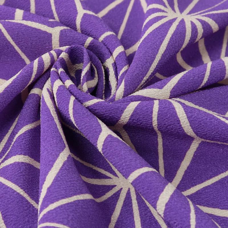衣装・衣類におすすめ!大柄の縮緬生地 ポリちりめん生地・大きな麻の葉(紫) 10cm単位 切り売り
