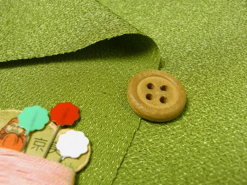 生地の上のボタンは直径約2cmです。生地のたて方向=写真のたてです。