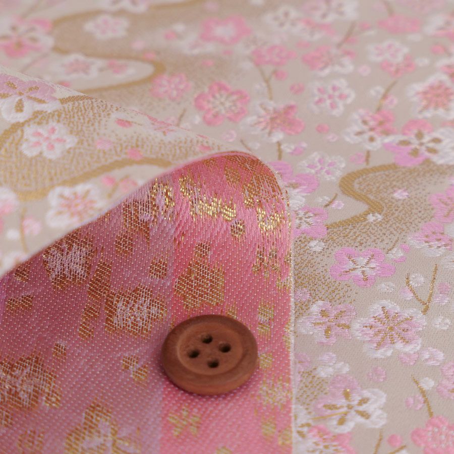他の画像を見る かわいい色柄の西陣織きんらん 金襴生地(金らん) 流水に夜桜と蝶(アイボリー/ピンク) 10cm単位 切り売り 販売価格 ¥ 385 税込 在庫切れ 再入荷お知らせ お気に入りに登録する