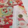 縮緬手芸に上品な古典柄 一越ちりめん生地 貝桶と花鼓(黒/赤)【布がたりオリジナル】 10cm単位 切り売り