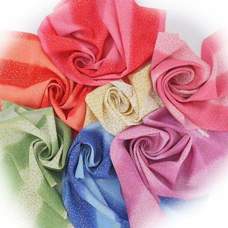 ちりめん生地 段ぼかしに金銀ふぶき7色セット
