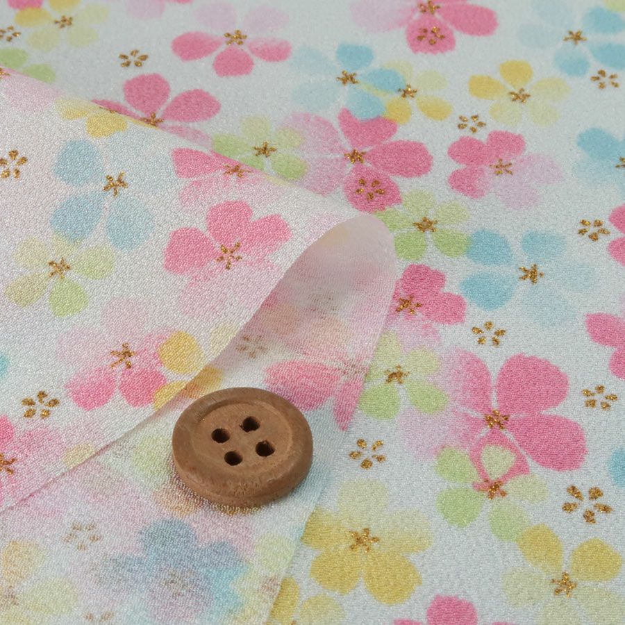 一越ちりめん生地 ふうわり花(白/桃色) 10cm単位 切り売り
