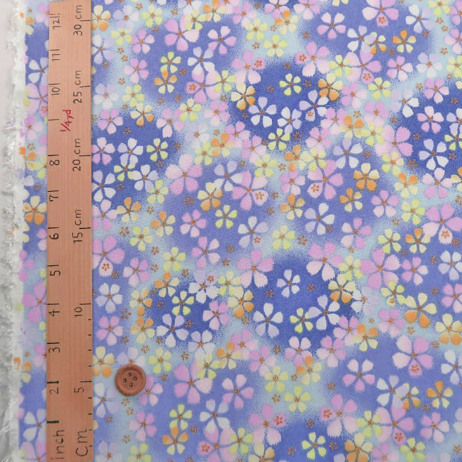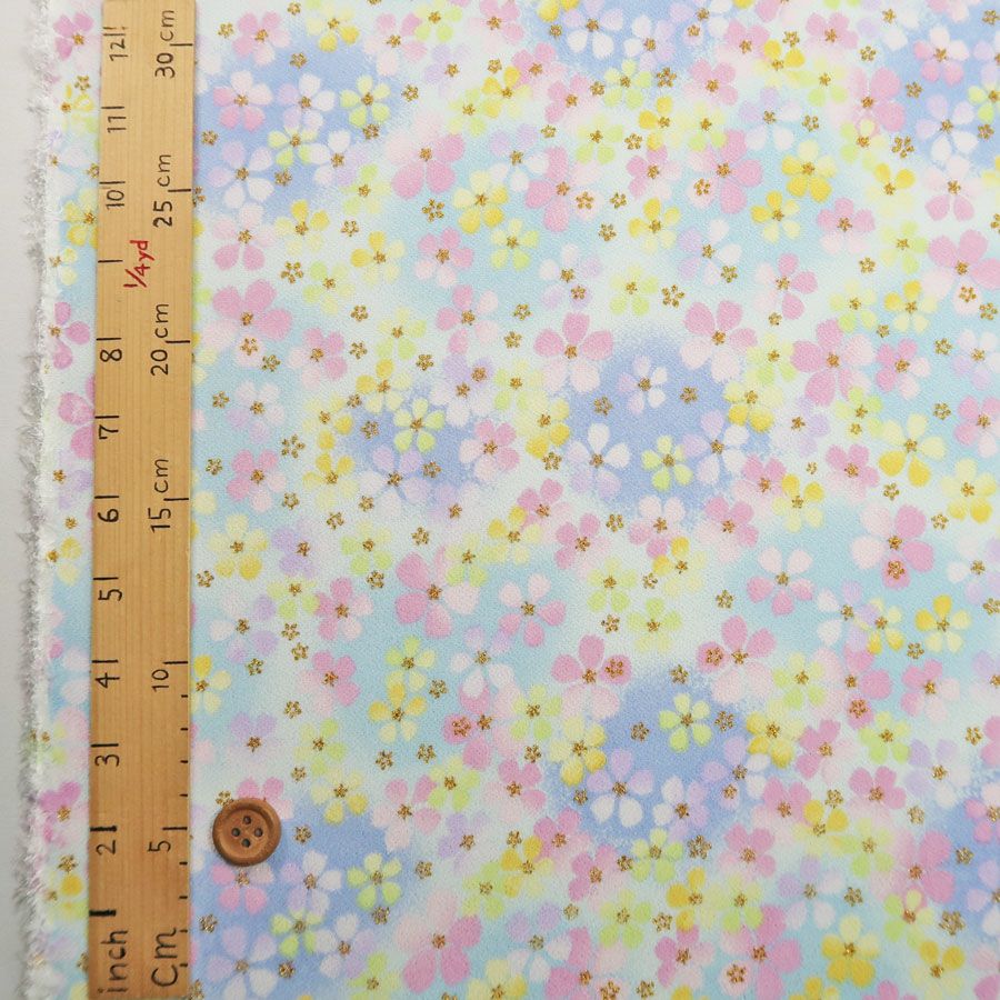 一越ちりめん生地 ふうわり花(ブルー/ピンク) 10cm単位 切り売り