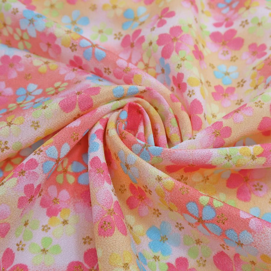 ちりめん生地 段ぼかしに金銀ふぶき(ピンク) 10cm単位 切り売り