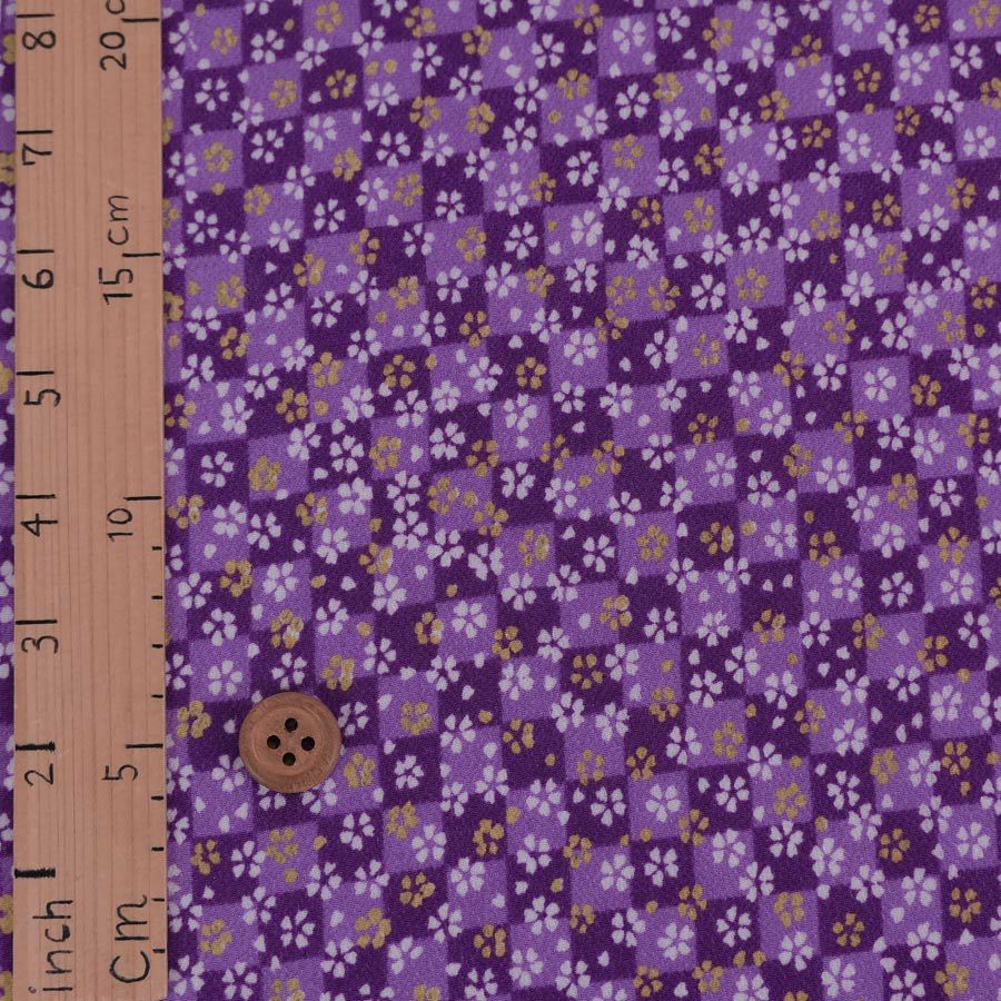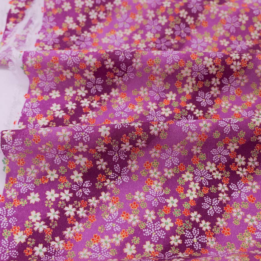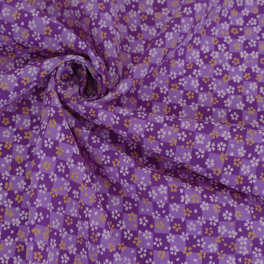 ちりめん生地 流れる桜(紫) 10cm単位 切り売り