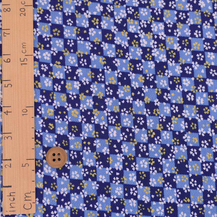 一越ちりめん生地 青海波に御所車(ブルー) 10cm単位 切り売り