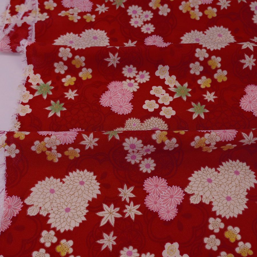 一越ちりめん生地 ふうわり花(赤) 10cm単位 切り売り