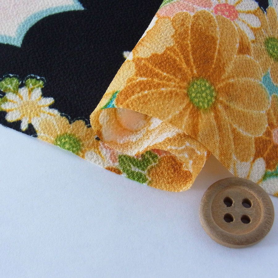 一越ちりめん・花孔雀(黒) 10cm単位 切り売り