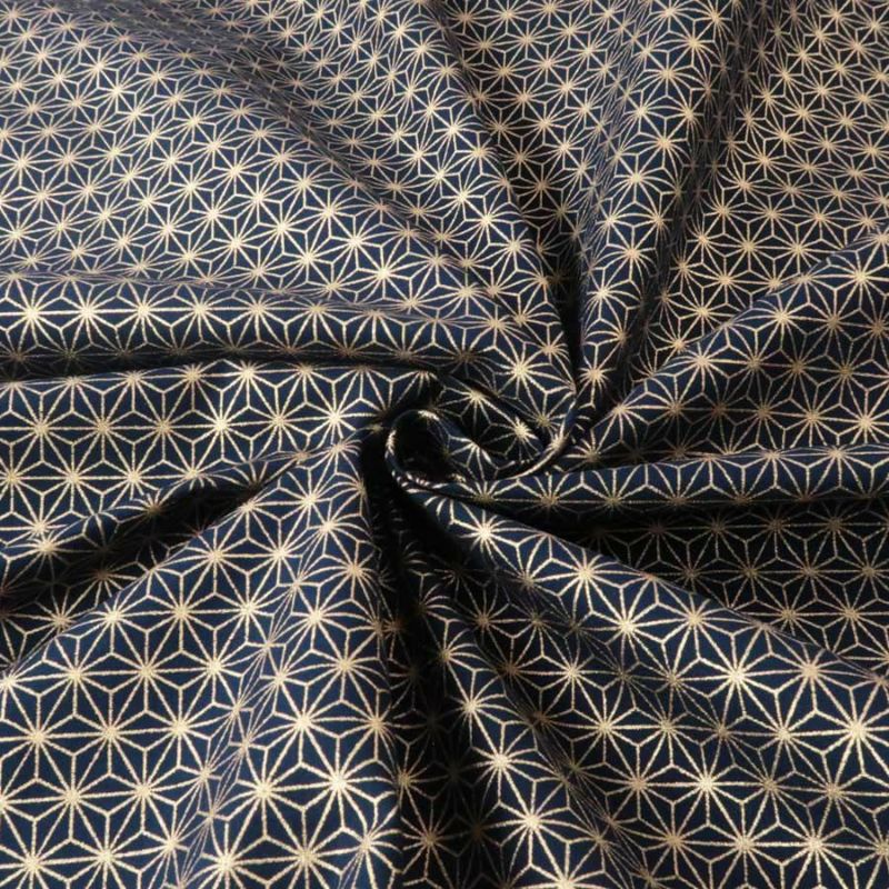 手芸や小物制作に 和柄コットン生地 金の麻の葉(濃紺) 10cm単位 切り売り