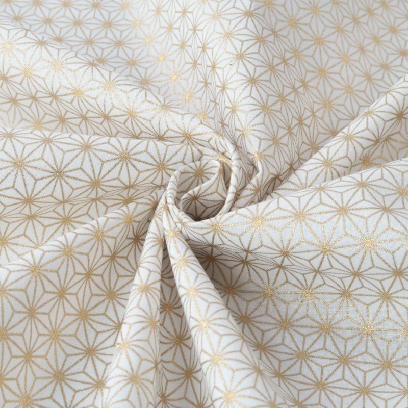 手芸や小物制作に 和柄コットン生地 金の麻の葉(白) 10cm単位 切り売り
