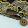生地の上のボタンは直径約2cmです。生地のたて方向=写真のたてです。