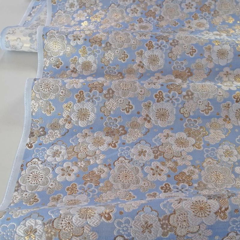 キラキラ華やかで素敵!お値段も魅力です 金襴生地(金らん)きらめき梅(黒) 10cm単位 切り売り