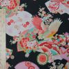 古布再現柄 華やかちりめん生地 一越ちりめん 鶴に扇(黒) 10cm単位 切り売り
