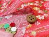 流れるような可愛い柄♪ ちりめん生地・らせん流水に花と蝶(赤) 10cm単位 切り売り