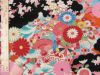 昔の柄を再現した、豪華なちりめん生地 古布再現ちりめん生地・平安花車模様(黒) 10cm単位 切り売り