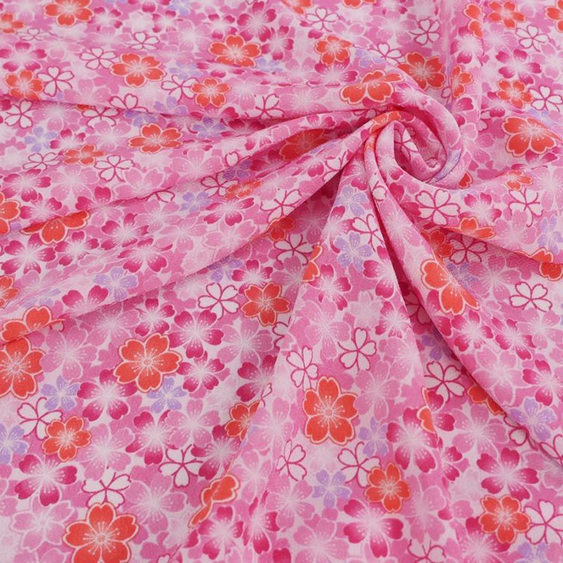 無地ポリエステルちりめん(桜色) 10cm単位 切り売り