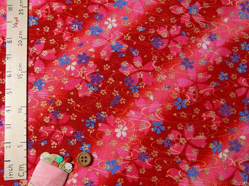 ちりめん生地・金水桜(紅色) 10cm単位 切り売り