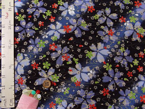 ちりめん生地・金水桜(黒) 10cm単位 切り売り
