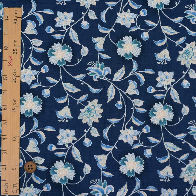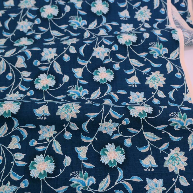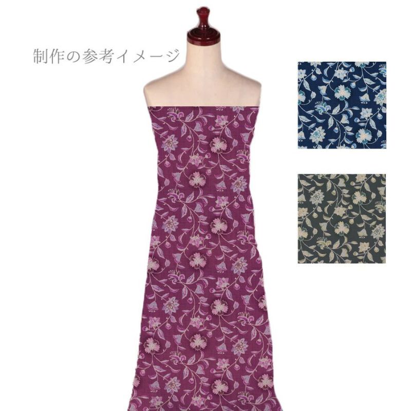 洋服・エプロン・バッグに コットン生地 無国籍な花柄(コーラルピンク/グレー) 10cm単位 切り売り