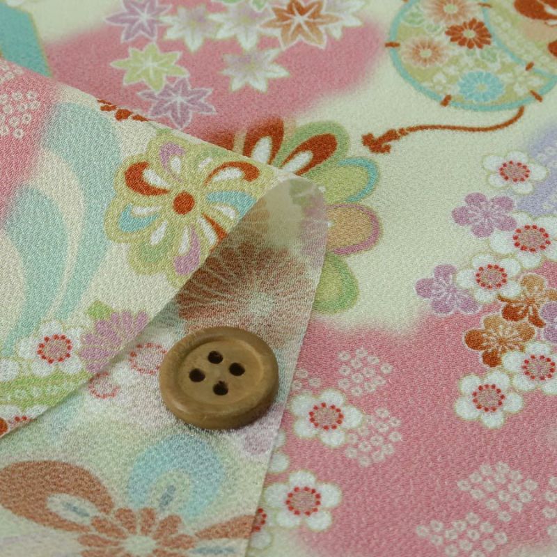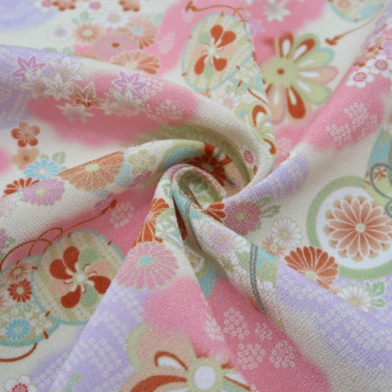 縮緬手芸やつまみ細工にも 上品な古典柄 在庫限り/ ちりめん生地・貝桶と花鼓(赤)【布がたりオリジナル】 10cm単位 切り売り
