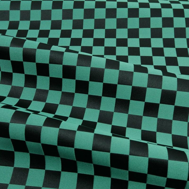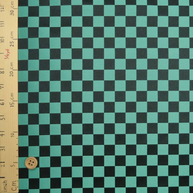 個性的な衣装やインテリアに! 在庫限り/西陣織物 市松柄4.4cm角(黒/緑) 10cm単位 切り売り