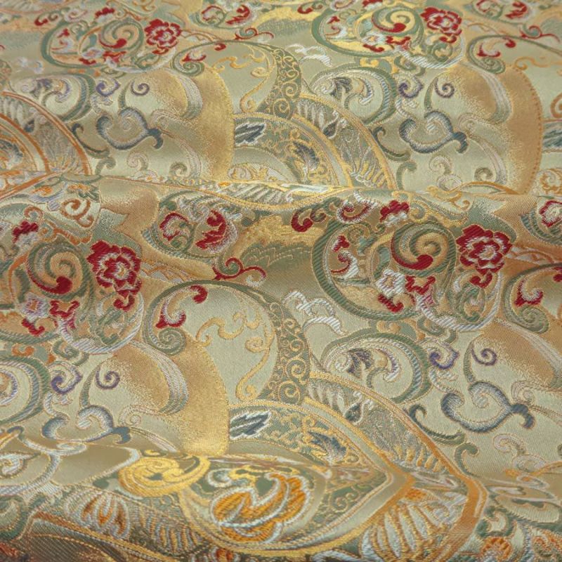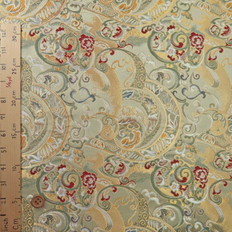 刀剣乱舞の衣装にも使用 金襴生地(金らん) 蕨手唐草文様(山葵色) 10cm単位 切り売り