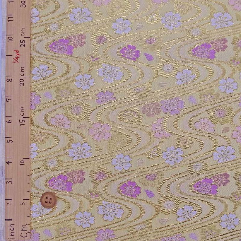華やかな西陣織・衣装やバッグに 金襴生地(金らん)流水に雪輪とねじり花(アイボリー) 10cm単位 切り売り