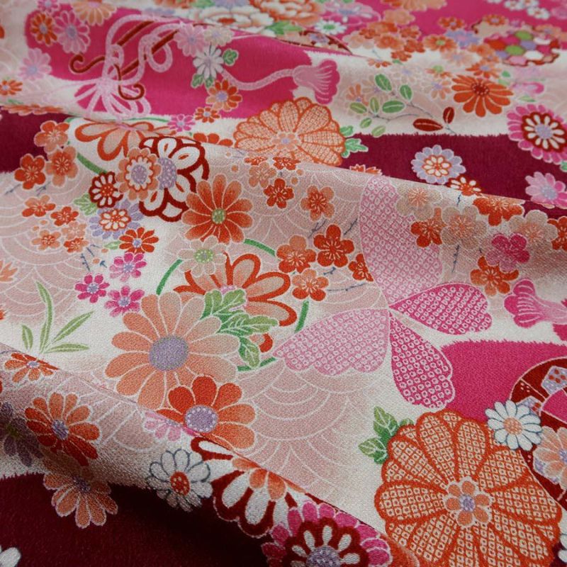 色がかわいい古典柄 一越ちりめん生地 青海波に御所車(ピンク/赤紫) 10cm単位 切り売り
