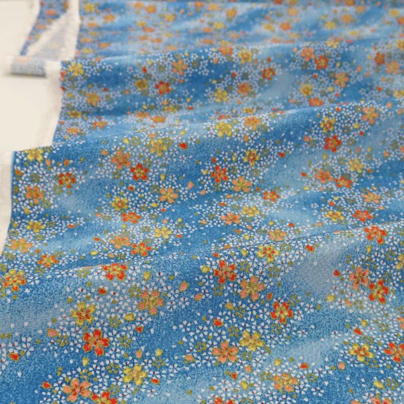 ちりめん生地 流れる桜(青) 10cm単位 切り売り