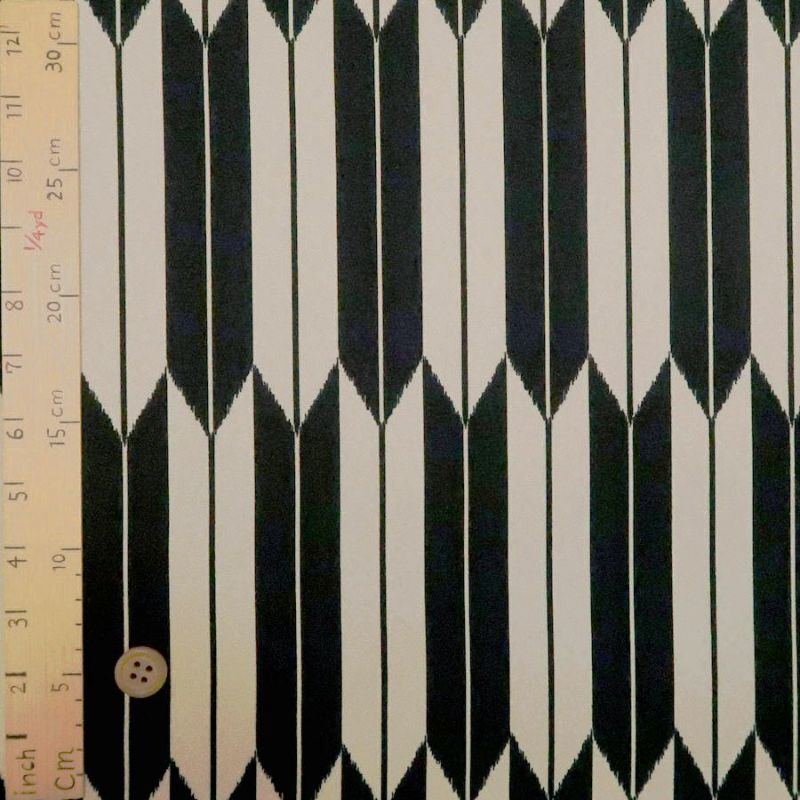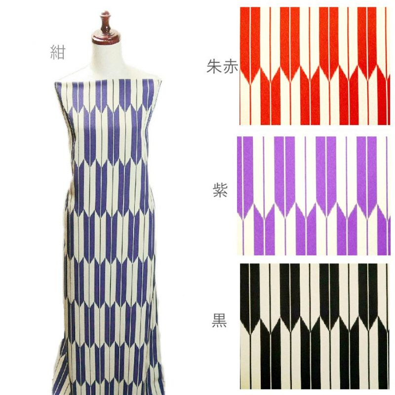 よさこい衣装・コスチュームに! 在庫限り/ポリちりめん生地 大きな矢絣(黒) 10cm単位 切り売り