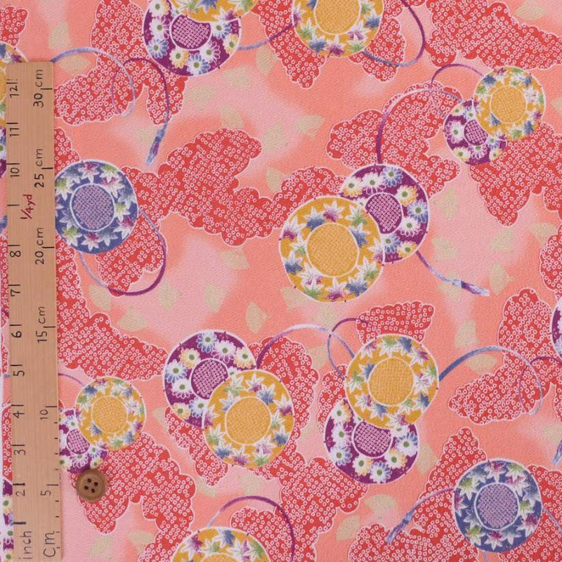 手づくりの着物にも!あらえる縮緬 ポリちりめん生地 花御所車の雅び(アイボリー) 10cm単位 切り売り