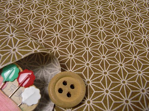 古布調一越ちりめん かのこ麻の葉(抹茶色) 10cm単位 切り売り