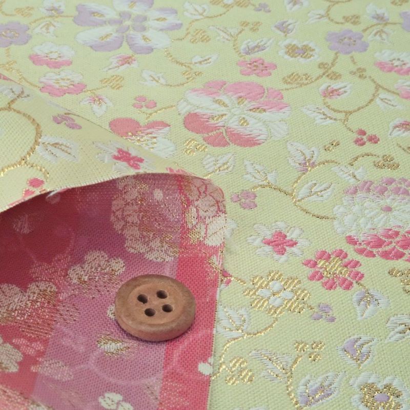 かわいい和風の小物作りに 金襴生地(金らん) 夢花唐草(パステルイエロー) 10cm単位 切り売り