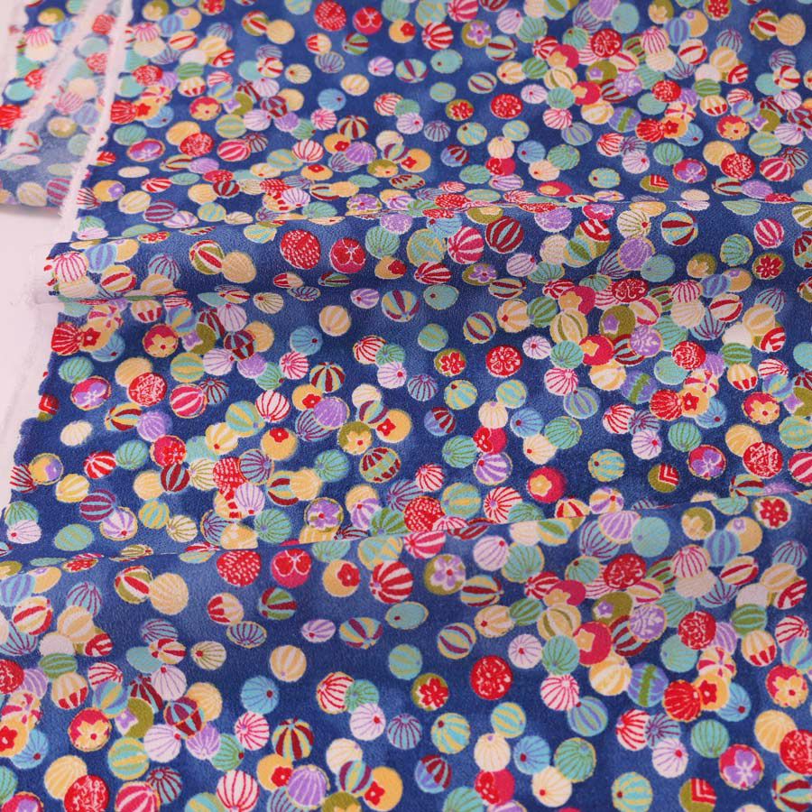 一越ちりめん生地 小まり(青) 10cm単位 切り売り