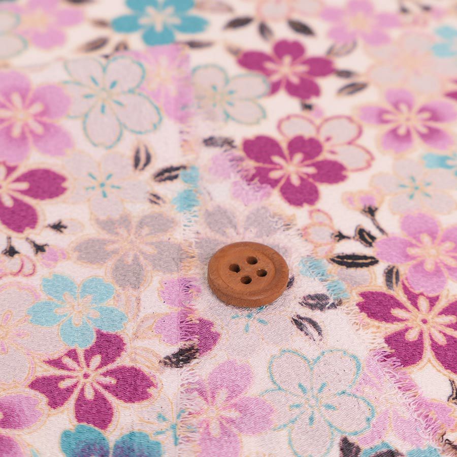 ポリちりめん生地 桜づくし(アイボリー/薄紫) 10cm単位 切り売り