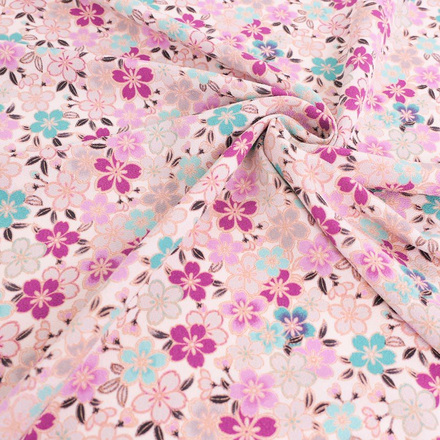一越ちりめん生地 観世水に菊と桜(淡ピンク) 10cm単位 切り売り