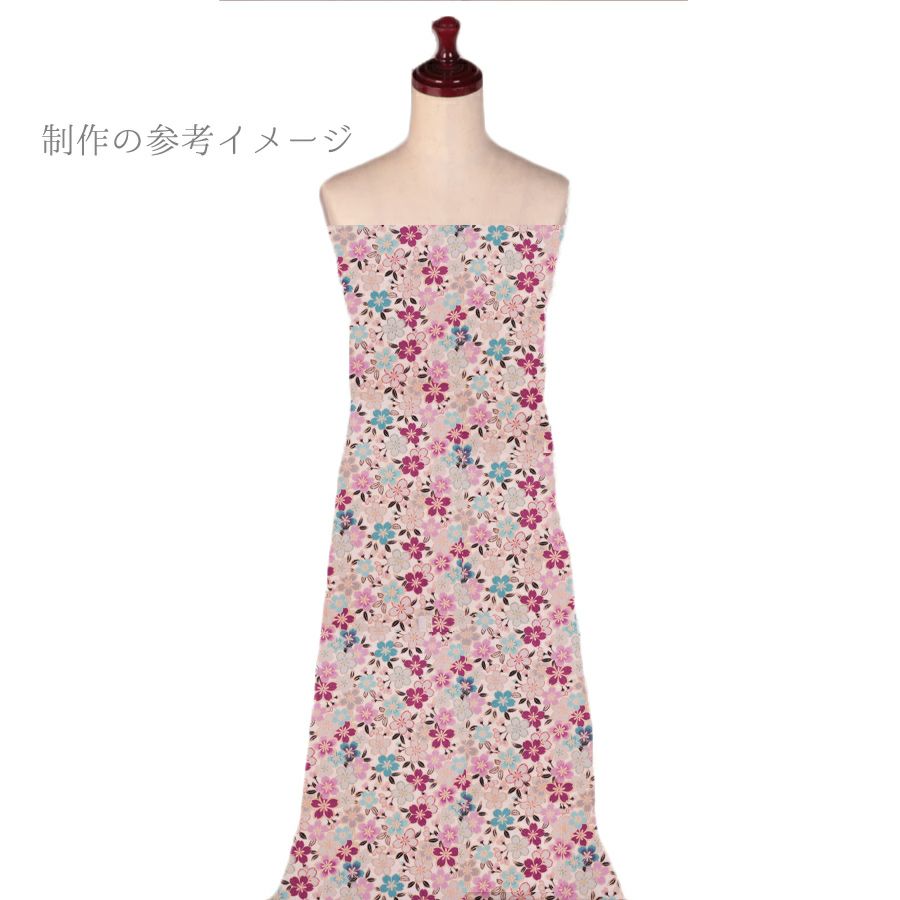ポリちりめん生地 桜紋ちらし(紺/ピンク) 10cm単位 切り売り
