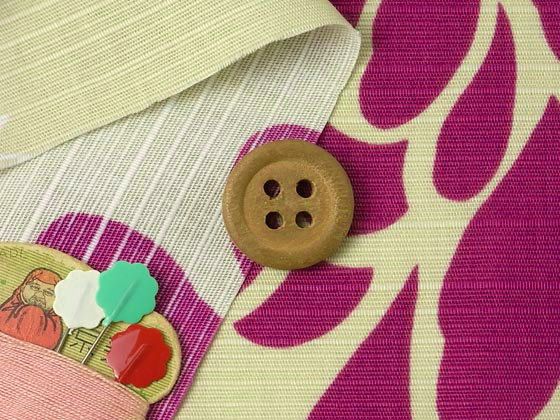 生地の上のボタンは直径約2cmです。生地のたて方向=写真のたてです。